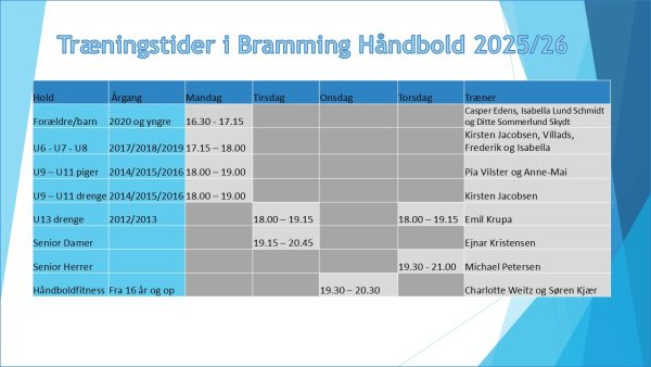 U9-U10-U11 piger | Pia Vilster og Anne-Mai | Mandag 18.00-19.00 | Bramming Kultur og Fritidscenter | Hal 1 |